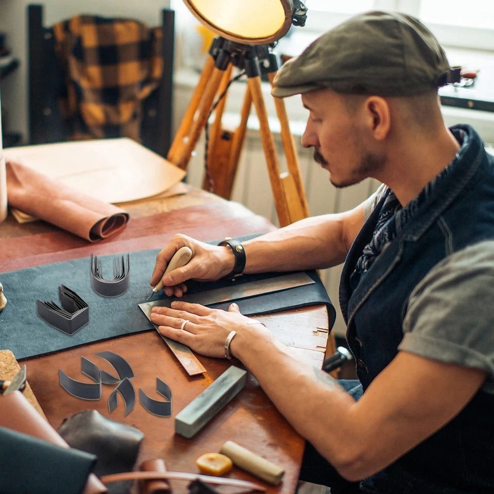 Unleash your creativity with this 18pcs leather punch cutter set. Designed for DIY leather enthusiasts, this kit offers everything you need to create professionalquality belt ends, straps, and other leather crafts. Whether youre a seasoned artisan or a hobbyist, these highspeed steel cutting tools ensure precision with every punch. Featuring three unique shapessquare, round, and sword tailthis set is the perfect addition to your leatherworking toolkit. Elevate your craft with tools that are durable, sharp, and easy to use. Key Features: Highspeed steel construction for unmatched durability and precision. Three tail options: square, round, and sword, to suit all your leather crafting needs. Razorsharp edges provide clean cuts without fraying or burns, even on thick leather. Ergonomically designed for comfort and control during use. Why Choose Our 18pcs Leather Punch Cutter Set: Compared to other leather cutting tools, our punch set stands out with its combination of versatility and strength. The highspeed steel ensures longevity, while the included square, round, and sword tail dies offer multiple design options, making this kit more adaptable than many others on the market. Whether you’re cutting belts, straps, or bags, this set guarantees professional results. Perfect For: Leather crafters and hobbyists looking for precision tools. DIY enthusiasts creating custom leather goods like belts, bags, and wallets. Artisans and professionals who require a highquality, reliable set of leather punches for longterm use. Get Creative with the 18pcs Leather Punch Cutter Set Dont settle for mediocre leather toolsexperience the 18pcs Leather Punch Cutter Set and craft beautiful leather items with ease. Order now and elevate your leatherwork!