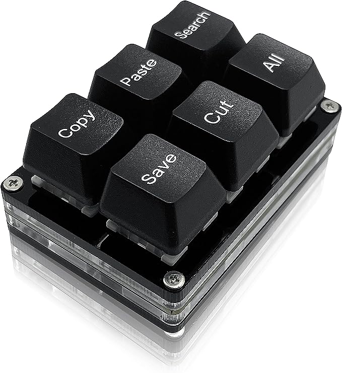 Take control of your workflow and gaming precision with this 6 Keys Copy Paste Search Save Cut Keyboard, designed for maximum efficiency and comfort. Its portable mini keyboard design saves valuable desk space, while the detachable USBC cable ensures quick setup and easy portability. This one handed OSU keypad is plug and play, meaning no extra software is needed to start using it immediately. You can even connect it alongside a regular keyboard on the same computer without interference, making it perfect for office work, content creation, editing, and competitive gaming. Fully Programmable for Any Task Beyond the default shortcuts, this keypad can be customized to perform: Undo and Redo actions Media controls like Play, Pause, Volume adjustments, Next and Previous track Complex macros with multiple steps Color lighting adjustments and gradient modes The programmable macro keyboard allows you to streamline any workflow or game strategy, giving you full control at your fingertips. Compact, Durable, and Versatile Its ultrasmall form factor frees up your workspace without sacrificing performance. Built with mechanical switches, it offers precise tactile feedback for fast and accurate input. Whether you’re editing videos, streaming, gaming, or managing daily tasks, this one handed keypad delivers reliable performance every time. Perfect for: Office productivity Music and video editing Gaming (especially OSU and MMO) Live streaming control Shortcutheavy creative workflows Buy now to supercharge your productivity and enjoy a smoother, faster, and more efficient workflow with this programmable shortcut keypad.
