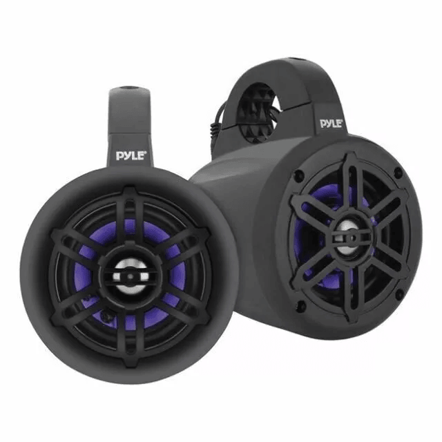Take your onwater audio experience to the next level with the powerful and durablePyle Bluetooth Ready Marine Tower Speakers with LED. Designed for highperformance in marine and outdoor environments, these speakers deliver impressive sound quality with vibrant LED lighting ideal for your boat, UTV, or wakeboard setup. Benefits & Features: Built for Marine Use Crafted with IP44 marinegrade waterproof housing, these speakers resist corrosion and weather damage, making them ideal for boats, UTVs, ATVs, and other offroad vehicles. Powerful Audio Output With 150W RMS and up to 300W peak power, enjoy fullrange stereo sound that cuts through wind and waves. Bluetooth Ready Seamlessly pair with Bluetoothenabled devices for wireless audio streaming without the need for complex installations. LED Illumination Stylish builtin LED lights create a dynamic visual experience during night cruises or dock parties. Universal Mounting Easy mounting system fits most wakeboard towers, roll bars, and railings for convenient setup across different vehicles. Durable Construction Heavyduty ABS housing and grill protect the internal components from environmental stress and impact. 4Inch Speaker Size Compact but powerful, the 4inch design makes it easy to fit without sacrificing sound quality. Wide Compatibility Works with boats, personal watercraft, sidebysides, golf carts, and other recreational vehicles. UV Resistant Finish Designed to withstand sun exposure without fading or cracking over time. Plug & Play Wiring Simplified wiring configuration makes installation quick and userfriendly. Whether you’re cruising open water or navigating rugged terrain, thePyle Bluetooth Ready Marine Tower Speakers with LEDoffer reliable, highfidelity sound with visual flair. Designed with active lifestyles and marinegrade durability in mind, these speakers bring music to your favorite outdoor environments rain or shine.