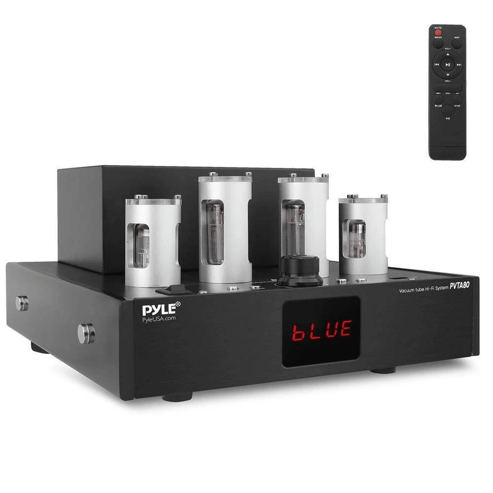 Bring warmth and clarity to your home audio experience with the powerful and beautifully engineered Pyle Home Theater Desktop Stereo Vacuum Tube HiFi Power Amplifier Receiver. Designed for true audiophiles, this system blends classic tube sound with modern functionality. Benefits & Features: Delivers 500W of peak power perfect for creating a dynamic home theater or music listening setup. Equipped with 4 authentic vacuum tubes known for producing rich, warm audio with euphonic distortion for a superior listening experience. Supports 3 audio input types USB for MP3 playback, plus dual CDDVD inputs, making it compatible with a wide range of sources. Bluetoothcompatible stream music wirelessly from smartphones, tablets, laptops, and other modern devices. Hasslefree pairing with stable connectivity. Builtin subwoofer output and dual speaker terminals supports 48 ohm speakers, allowing you to fully customize your setup. Top panel control layout conveniently located controls include input selector, playback buttons, master volume knob, and LED display screen. Cooling fan integration a builtin fan ensures consistent temperature control for long sessions, protecting internal components. Durable design with doublesided fiber circuit board engineered for longterm performance and reduced signal interference. Includes remote control and power cable control your system from across the room for added convenience. This allinone Pyle Home Theater Desktop Stereo Vacuum Tube HiFi Power Amplifier Receiver is more than just a sound system it’s an experience. Whether you’re watching movies, listening to vinyl, or streaming digital playlists, enjoy the depth and fidelity only vacuum tubes can provide. Perfect for audiophiles, music collectors, and anyone looking to elevate their home audio setup, this system delivers professionalgrade sound quality with plugandplay simplicity.