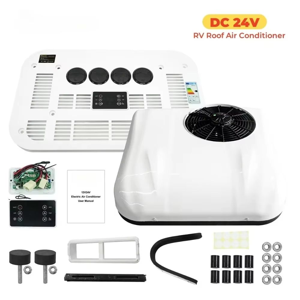 Stay cool and comfortable anywhere with this rooftop air conditioner designed for campers, trucks, RVs, and offgrid setups. Delivering up to 13,500 BTU of fast cooling power, it ensures relief from heat even in demanding conditions. The ultraquiet 45 dB operation makes it ideal for restful sleep or focused work, while the softstart compressor protects your power supply. With a wireless remote and DIY installation kit, this 12V air conditioner offers both convenience and reliability for modern travelers. Key Features 13,500 BTU cooling capacity for efficient climate control. Compatible with 12V24V systems for versatile installation. Ultraquiet 45 dB operation for peaceful comfort. Softstart compressor reduces strain on batteries or generators. Wireless remote control with simple, intuitive operation. Why Choose Our Rooftop 12V24V Electric Parking Air Conditioner Unlike standard cooling units, this model is built for mobility and offgrid use. Its softstart design ensures smoother operation, while the quiet performance makes it ideal for night use. Easy DIY installation saves time and cost compared to professional setups. Its more energyefficient and camperfriendly than many bulky alternatives. Perfect For RV owners, truckers, and campers needing a reliable cooling solution. Offgrid living or travel where portable, efficient cooling is essential. Overnight parking, road trips, or outdoor adventures in warm climates. Bring Comfort Wherever You Go Experience lasting comfort and powerful cooling with the Rooftop 12V24V Electric Parking Air Conditioner, designed to keep your space refreshing even in the hottest weather.
