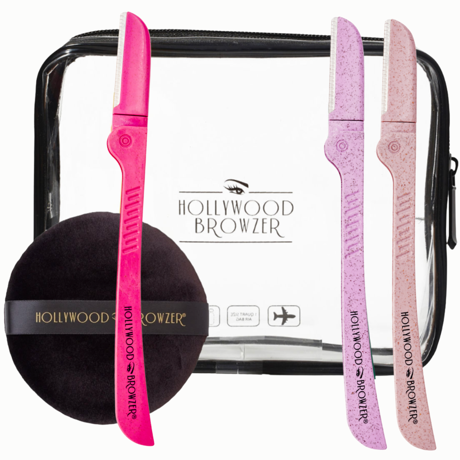 What is The Hollywood Glow Kit? The Hollywood Glow Kit is a comprehensive dermaplaning system designed to remove all barriers to exceptional skin. This carefully curated bundle brings the complete salon experience home, combining multiple professional-grade tools in one package for consistently smooth, radiant, and camera-ready skin. The kit includes a luxury cosmetic puff to keep your dermaplaner clean and clear after each use, and a signature Hollywood beauty bag to store and organise all your essential tools, making it ideal for home or travel use. What are the benefits? Provides a full dermaplaning experience at home, helping to reveal smoother, glowing skin while maintaining your tools. Perfect for travel or daily skincare routines, it ensures effortless, professional results. What are the key features? Complete dermaplaning system for home use Luxury cosmetic puff for tool maintenance Hollywood beauty bag for organisation and travel Includes multiple dermaplaning tools in one package Delivers consistent salon-quality results at home Usage How to use The Hollywood Glow Kit Ensure your Cryo Roller has been stored in the freezer for at least 3 hours. Use dermaplaning tools on clean, dry skin with gentle strokes. Use the luxury cosmetic puff to clean the dermaplaner after each use. Store all tools in the Hollywood beauty bag when not in use. Usage Warnings Precautions to consider before using The Hollywood Glow Kit For external use only. Avoid direct eye contact. If irritation occurs, discontinue use immediately. Keep out of reach of children. Warnings